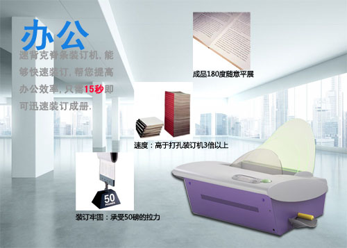 在很早的时候,速背克装订机就已经在国内上市了。速背克这个名称起源于它可以在报册、简报的书脊处快速装订个性化脊条。不过这台机器的操作非常简单,更适合政府机关,企事业单位的文印处,专业设计院,大型图文处理中心的装订需求,是代替胶圈装订,线订等其他方式的最佳选择。您不妨可以试用,体验一下1册、10册、100册书籍的无线胶订,肯定会比普通的装订机的效率提高几倍。根本不用考虑机器设置或空转的成本消耗,这个问题商家早就为消费者考虑到了。书籍都可以进行按需装订,立等可取!