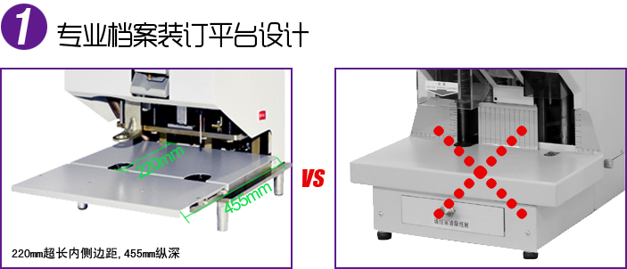 ◆fun88乐天堂 NB-2250卷宗装订机是一款集自动打孔,自动压铆装订为一体的自动化智能档案装订设备。可以一次自动完成50mm以下厚度文件档案打孔装订成册的工作。 ◆采用坚固耐用的全金属整体结构设计,微电脑程序控制电路,国际知名厂商所生产的核心部件,从而保证了整机运转稳定,精准耐用的特点, ◆采用易于操作、稳定耐用的轻触式按键、功能分区操作面板,具有故障检测报警指示灯提示功能。 ◆预热时间约4-6分钟. ◆温度可调,调温可从操作面板上通过按键实现,不需要拆机调温,这样在面板上操作快速便捷,安全可靠; ◆节能环保,机器在不工作状态下,二十分钟后进入休眠状态(不加热)延长了机器使用寿命,节约了电能消耗,环保安全 | ![]() |